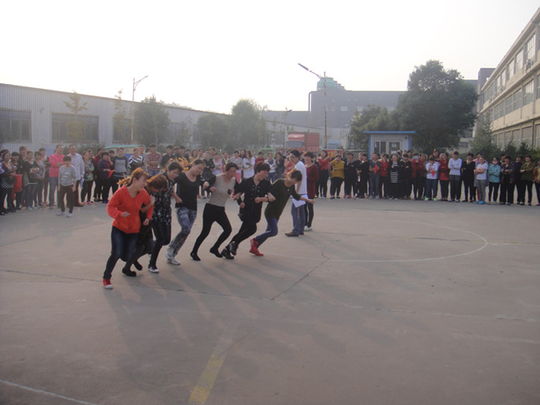 2014年10月22日,公司組織舉辦了2015趣味運動會,這是我司成立以來第二次舉辦該類活動,活動設置了拔河、集體跳繩、滾雪球、協(xié)力競走、綜合接力五個項目。按工序分組參加比賽,廣大員工積極參加,累計251人次參加活動,占全員比例的78%。根據(jù)比賽規(guī)則決出冠、亞、季軍共105人次,占全員比例的33%。趣味運動會圖片如下: